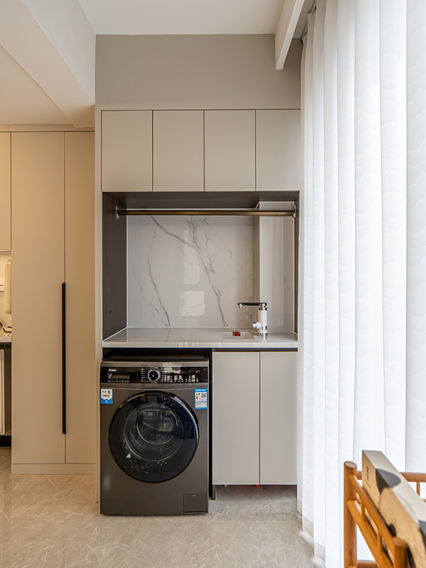 L 型衣柜,有藏有露書柜,各種細(xì)節(jié)塑造,讓空間層次更豐富