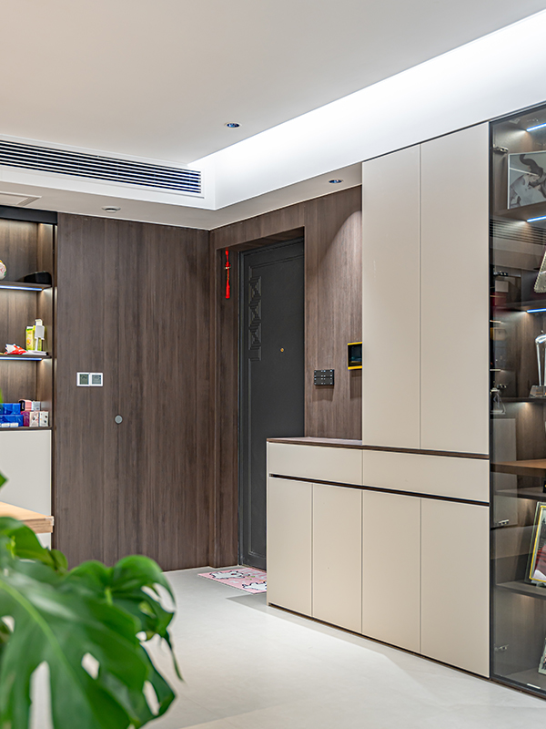 通鋪了1500×750的淺色瓷磚,使得空間得到了延伸,家里看起來顯大又通透