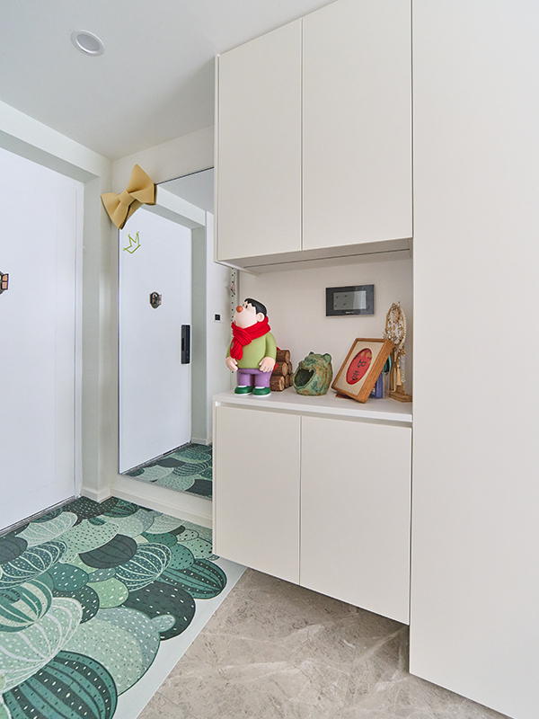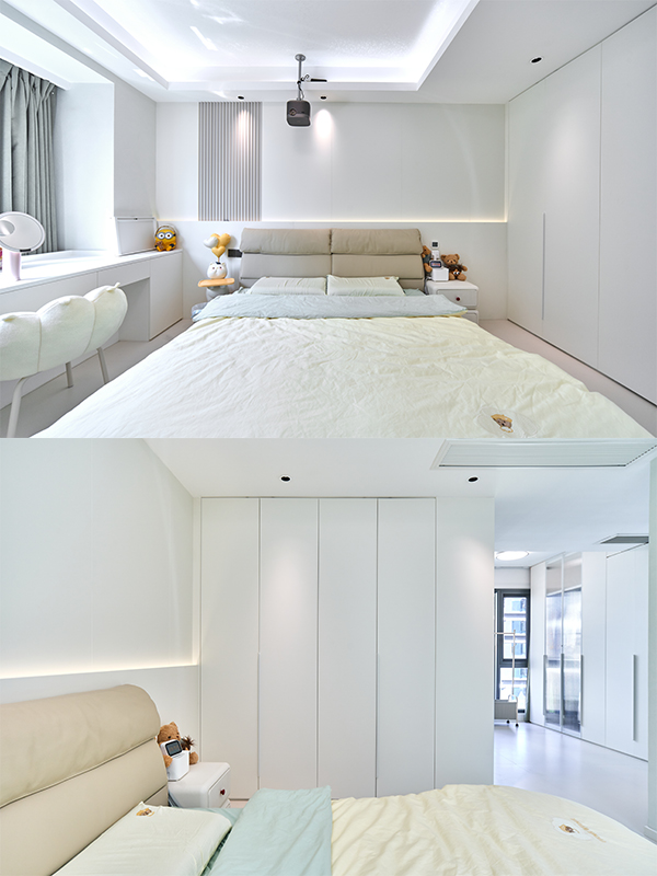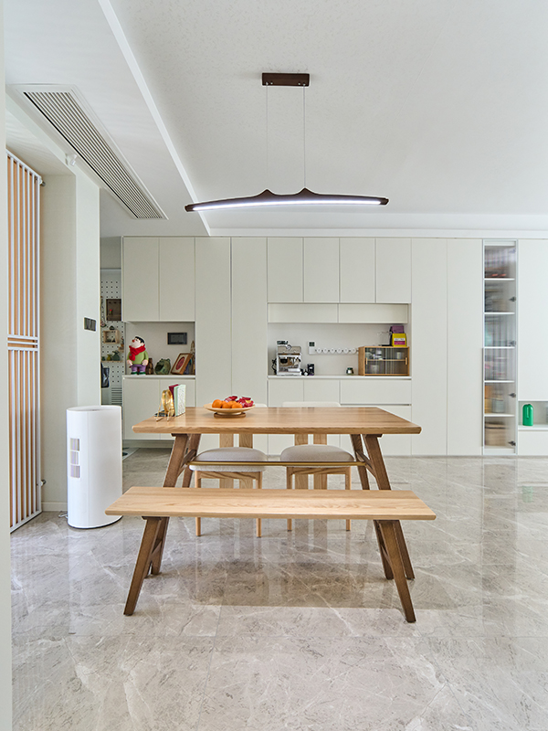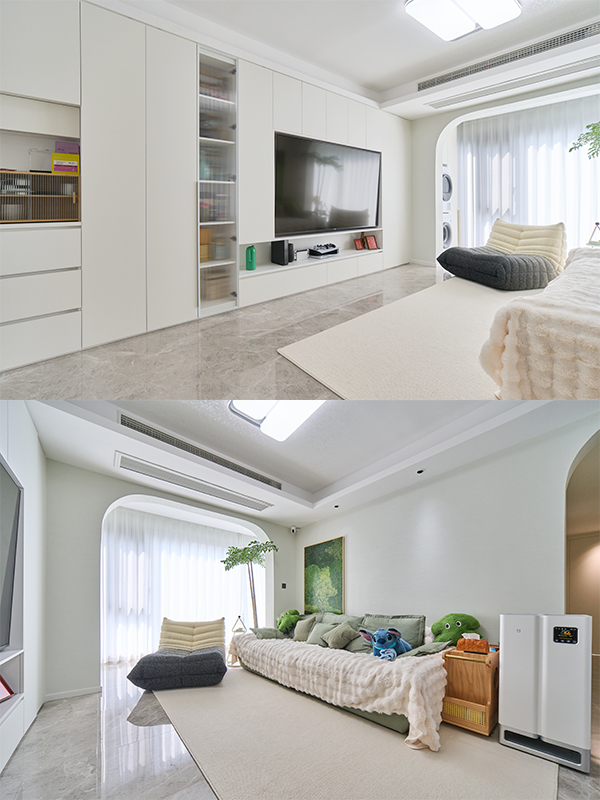 滿墻電視柜用開放格和玻璃門做點(diǎn)綴,讓整個空間高級又細(xì)膩