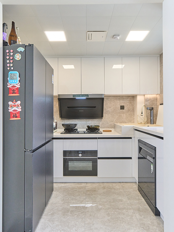 L 型櫥柜充分利用轉(zhuǎn)角空間,整體靈活多變,合理的動線設(shè)計讓業(yè)主在烹飪時事半功倍