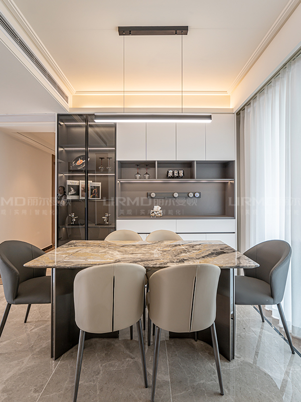 黑白灰的簡(jiǎn)單搭配,拋棄多余的裝飾設(shè)計(jì),營(yíng)造品質(zhì)與細(xì)節(jié)拉滿的質(zhì)感,打造出氣質(zhì)卓然的空間氛圍