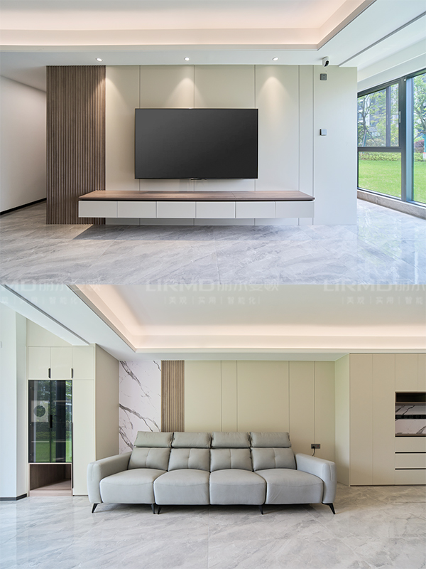 柜.墻.門一體化,從柜到墻再到門的連貫延伸,完美呈現(xiàn)出簡潔大氣的空間感