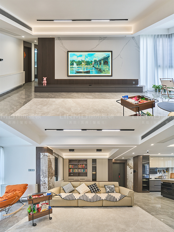 無主燈設(shè)計,不壓層高,也烘托出了空間氛圍,給人一種溫暖的舒適感