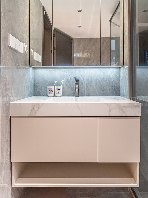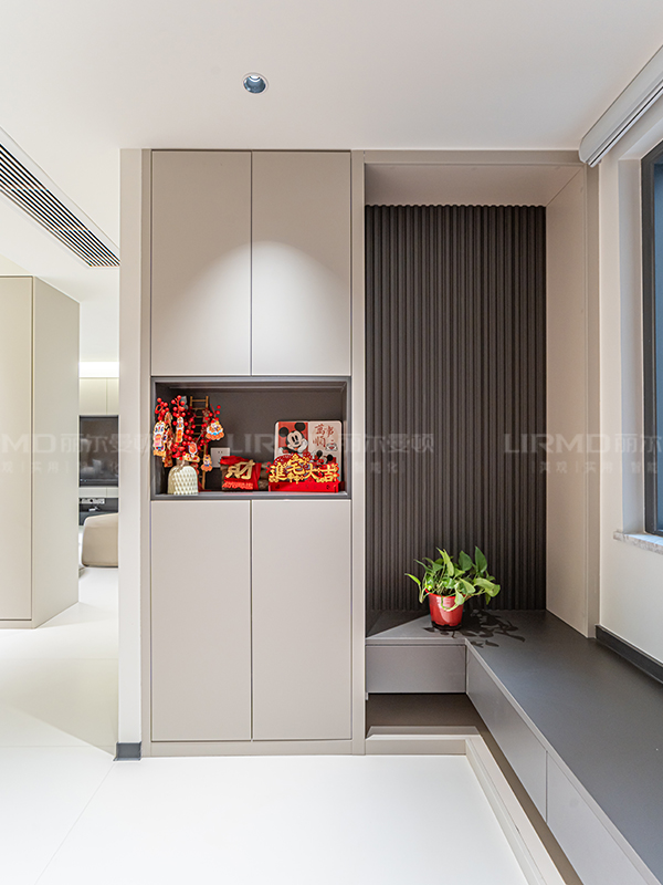 整體簡潔通透,餐邊柜,電視柜增加儲(chǔ)物空間的同時(shí)視覺上更干凈整潔