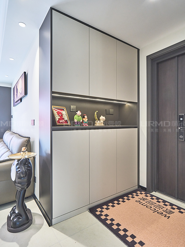 門墻柜一體化,創(chuàng)造出統(tǒng)一、協(xié)調(diào)的視覺效果,讓整個空間顯得更加一體化,營造出簡潔、整潔的氛圍