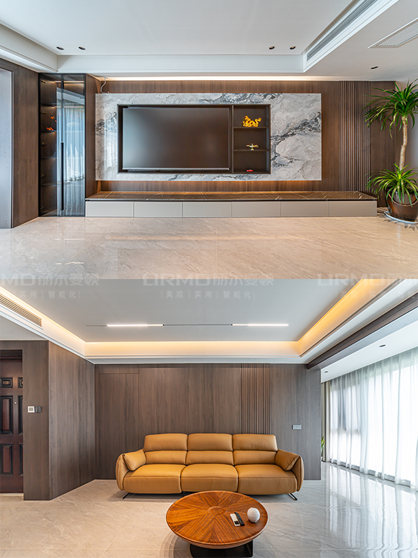 懸浮大理石電視柜與木質(zhì)的溫暖搭配,營造出沉穩(wěn)內(nèi)斂之感