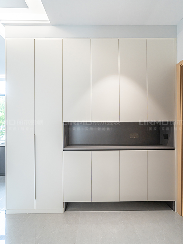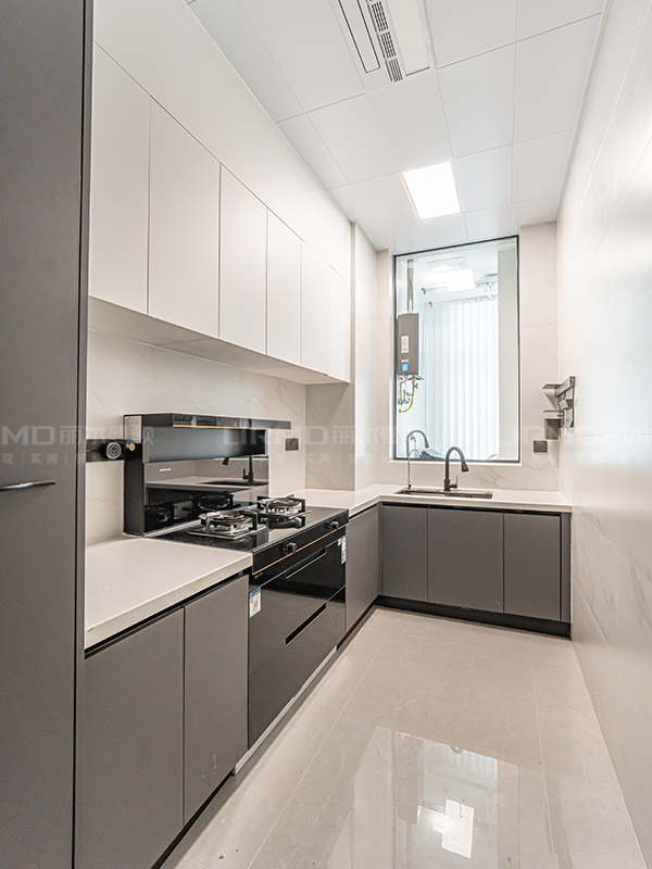 L 型櫥柜以白色和灰色為主色調(diào),簡潔大方,易于清潔和維護