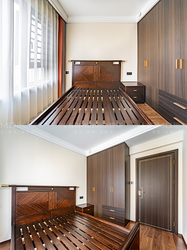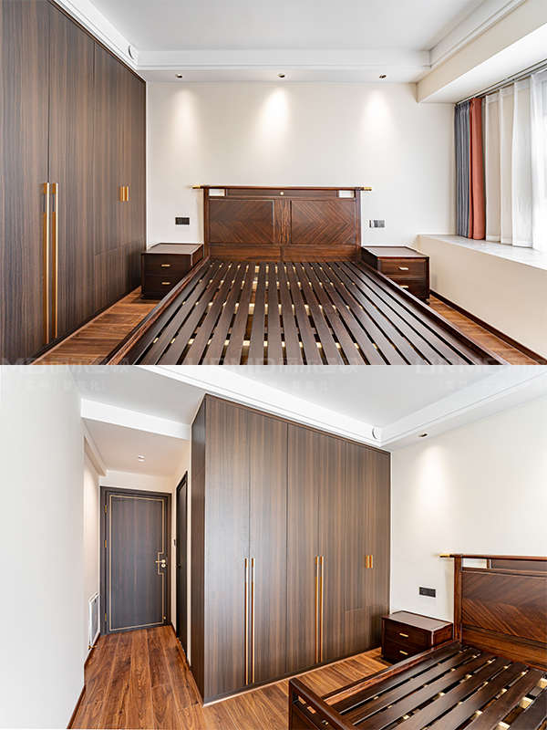 長(zhǎng)沙靠譜裝修公司,長(zhǎng)沙靠譜全屋定制,臥室衣柜加梳妝臺(tái),新中式風(fēng),