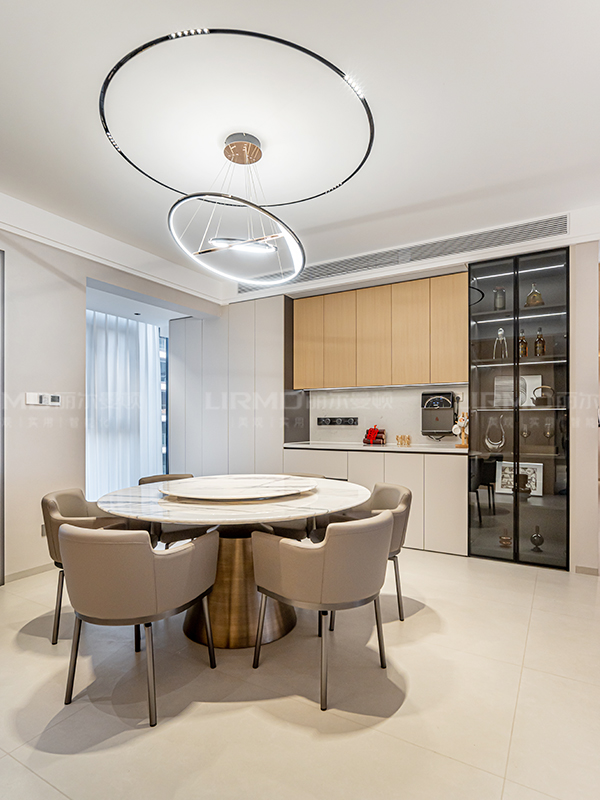 全房無主燈設(shè)計,將現(xiàn)代輕奢精髓發(fā)揮極致。點光源+線性燈帶搭配,照明均勻而充足,浪漫溫馨。